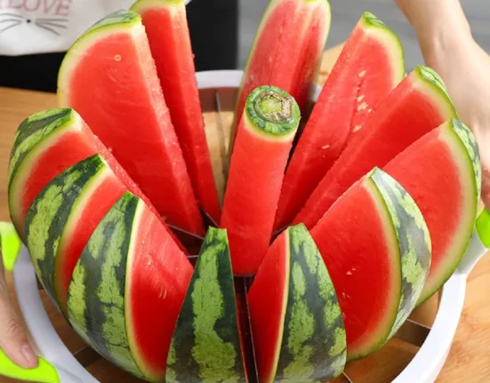 Cutting large watermelons can be a hassle, but the Extra Large Watermelon Slicer from Mannice Store makes it simple. This tool is designed