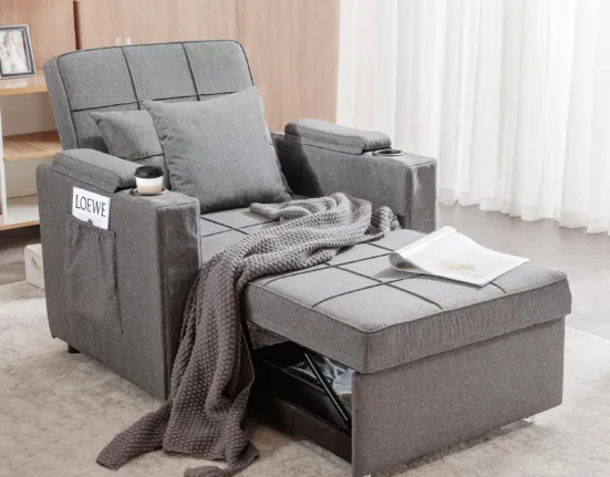 The COMHOMA Convertible Chair Bed is a versatile piece that easily changes from a chair to a bed, making it perfect for small