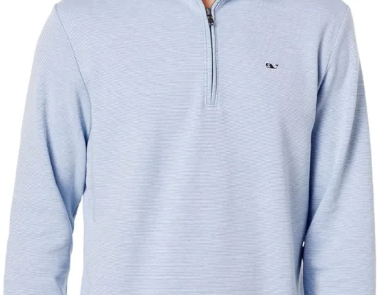 The Vineyard Vines Men’s Saltwater Quarter-Zip Pullover is a popular choice for men looking for a versatile and comfortable sweater. With a rating